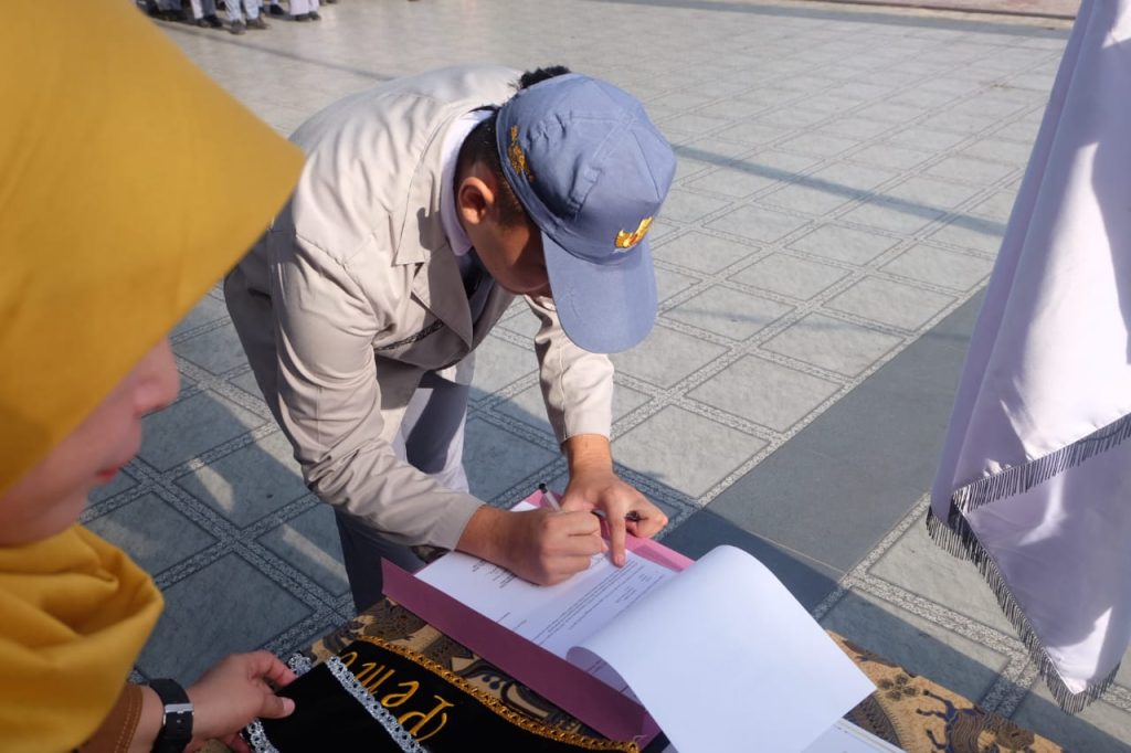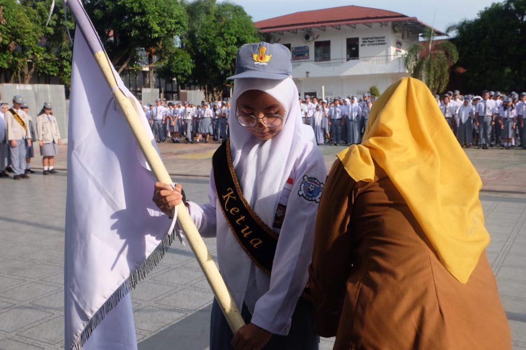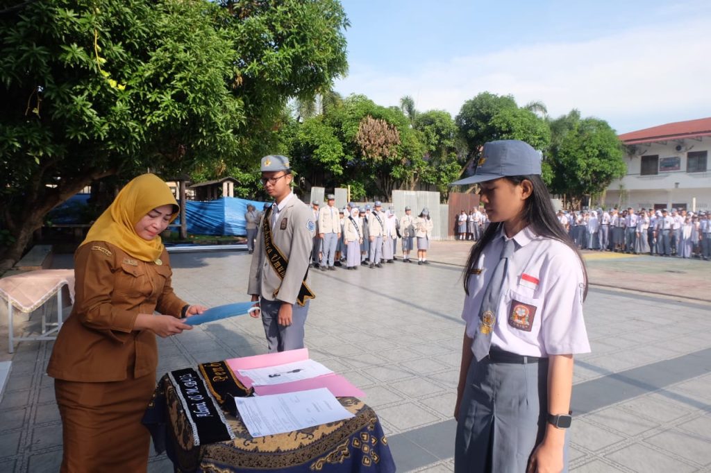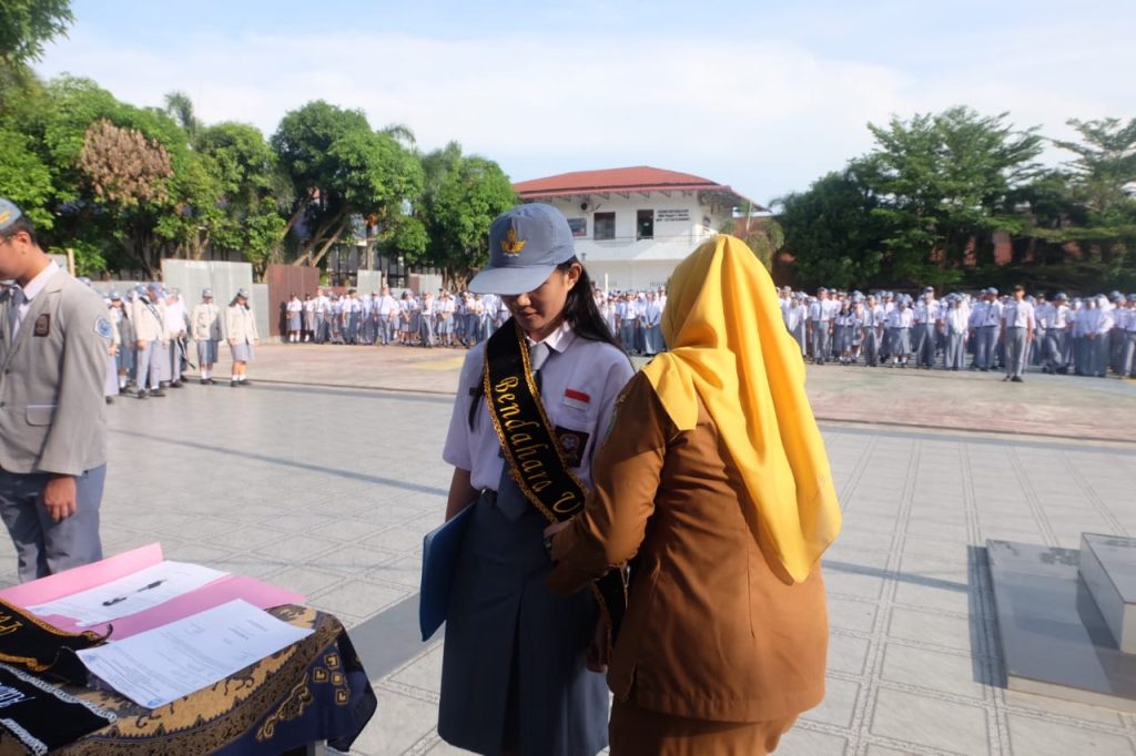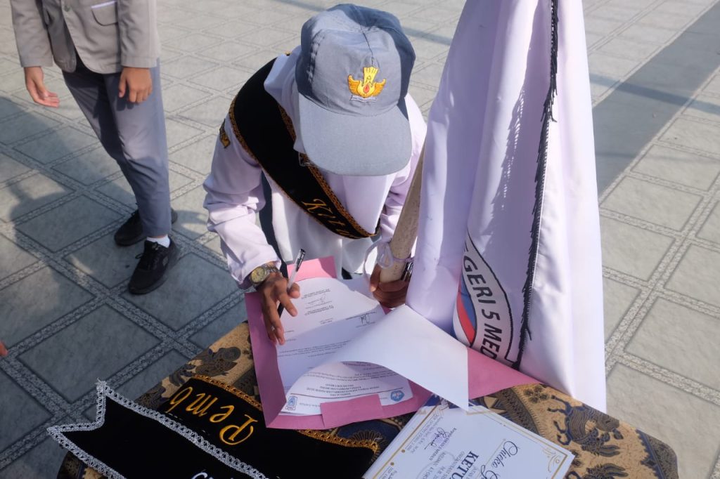 Pada Hari Senin Tanggal 13 Oktober 2025 Kepala SMA Negeri 5 Medan Ibu Supraba Ika Sari, S.Pd, M.Pd melalukan Serah Terima Jabatan Pengurus OSIS Masa Bakti 2024/2025 kepada Pengurus OSIS Masa Bakti 2025/2026